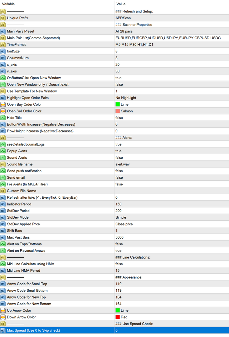 For now, the scanner is just to show "Shift" bar's signals like this. And give alerts when a new signal happens. By default shift bar = 1. Because bar 0 is still forming. Check out the attached settings and screenshot of scanner.
