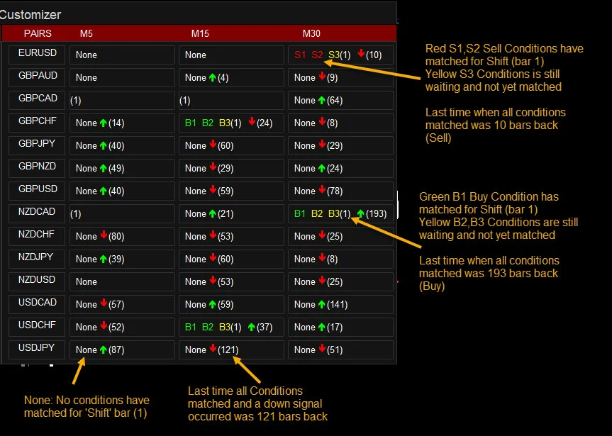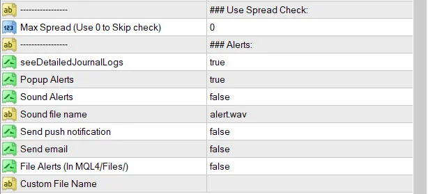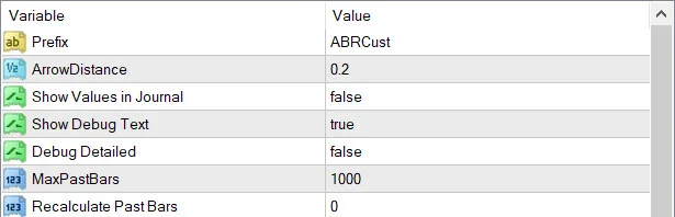 PastBars_BackAlerts: In case an arrow had occurred scanner will show an alert within these bars. Set it to 1 if you only want last closed bar signal alerts.