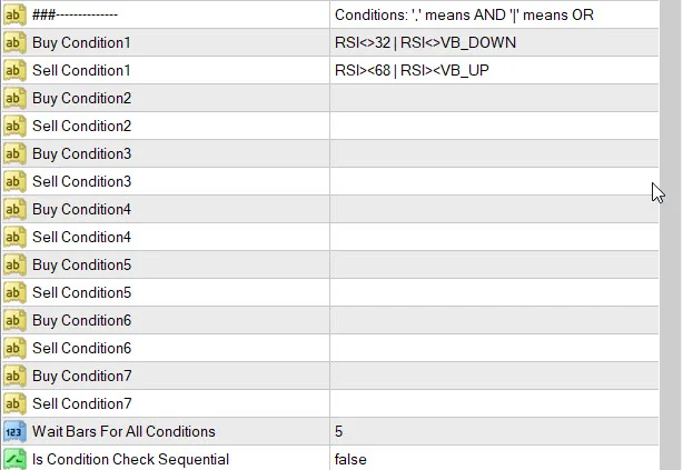 Buy Condition1: RSI<>32 | RSI <> VB_DOWN