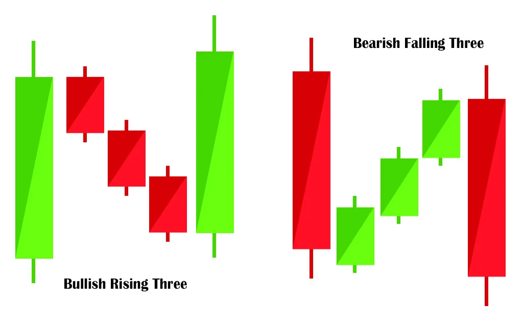 If “Rising Three” is true, then it will check for a bullish bar first, then 3 bearish bars, then finally a bullish engulfing bar again like this:
